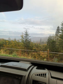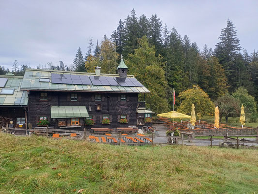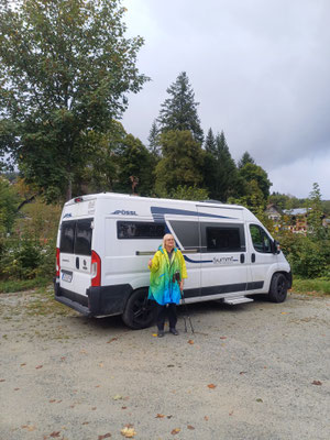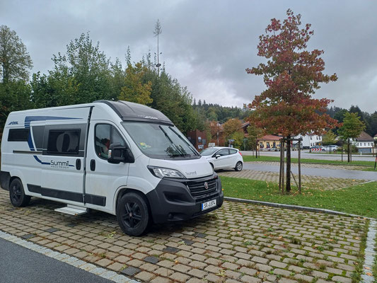 Nachdem wir gestern in den Steinklamm bei Spiegelau unterwegs waren, soll es heute über den Urwaldsteig und Hochberg zum Schwellhäusl gehen. Wir haben auf dem Stellplatz in Ludwigsthal übernachtet und es hat die ganze Nacht geregnet. Wir stehen erst um 9 Uhr auf und sehen nichts :-). Denn als aufhört zu regnen, kommt der Nebel. Wir putzen den Bus und nach dem Frühstück geht es nach Bayerisch Eisenstein. Das Brummen am CamperVan, das wir bereits seit einigen Wochen hören und wegen dem wir auch schon in der Werkstatt waren, wird immer lauter. Nach der Tour schauen wir auf jeden Fall nochmal in die Werkstatt. Gegen 12 Uhr erreichen wir den Startpunkt der Tour am Wanderpark-Platz in Bayerisch Eisenstein (Navi: Anton-Pech-Weg 13, 94252 Bayerisch Eisenstein).