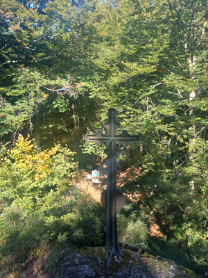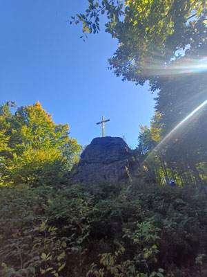 Pfennigfelsen, Drei-Wappen-Felsen, der Kreuzfelsen (höchster Berg des Oberpfälzer Waldes in Bayern), zum Leuchtturm der Menschlichkeit am Tannenriegel und zum Glaskreuz am Reiseck.